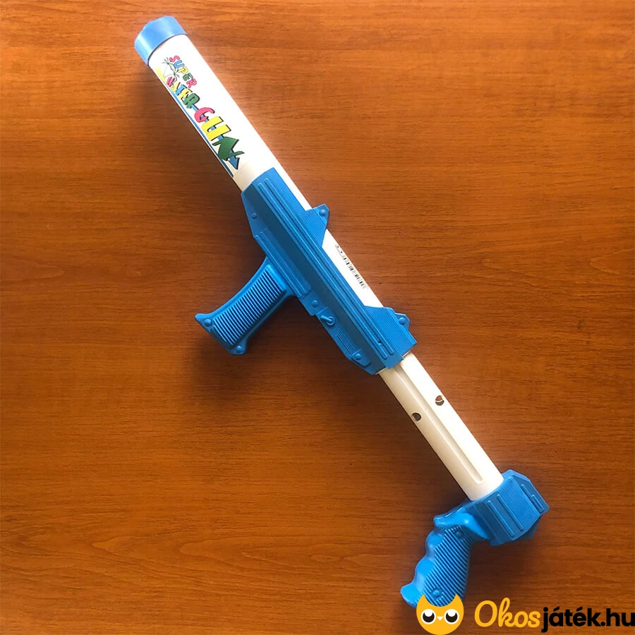 Igazi puskához hasonlító, két markolatos, így stabilan tartható és könnyebb a pontos célzás vele. Pumpás rendszerű, egyszerűen csak merítsd a csövét a víz alá (akár medencében vagy, de akár egy vödör is megfelelő) és húzd hátra a hátsó markolatot, majd indulhat a vízi csata. Célzol és visszanyomod a dugattyút. Jó messzire lehet spriccelni ezzel a nagy méretű, 40 cm-es vízipuskával.