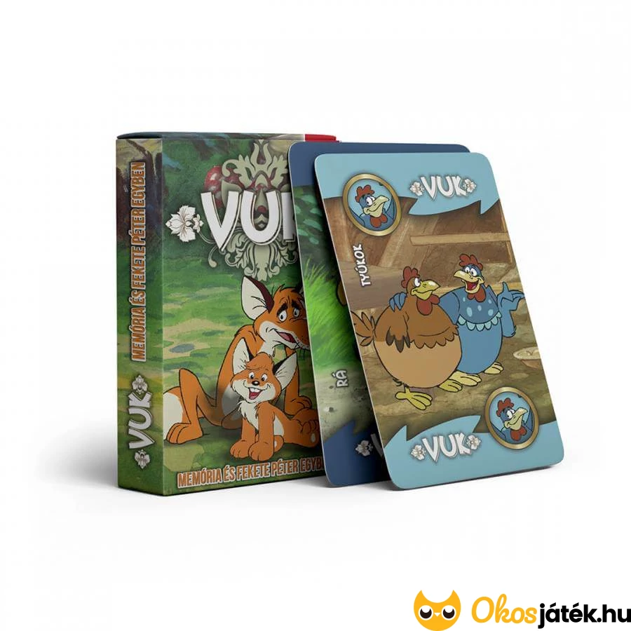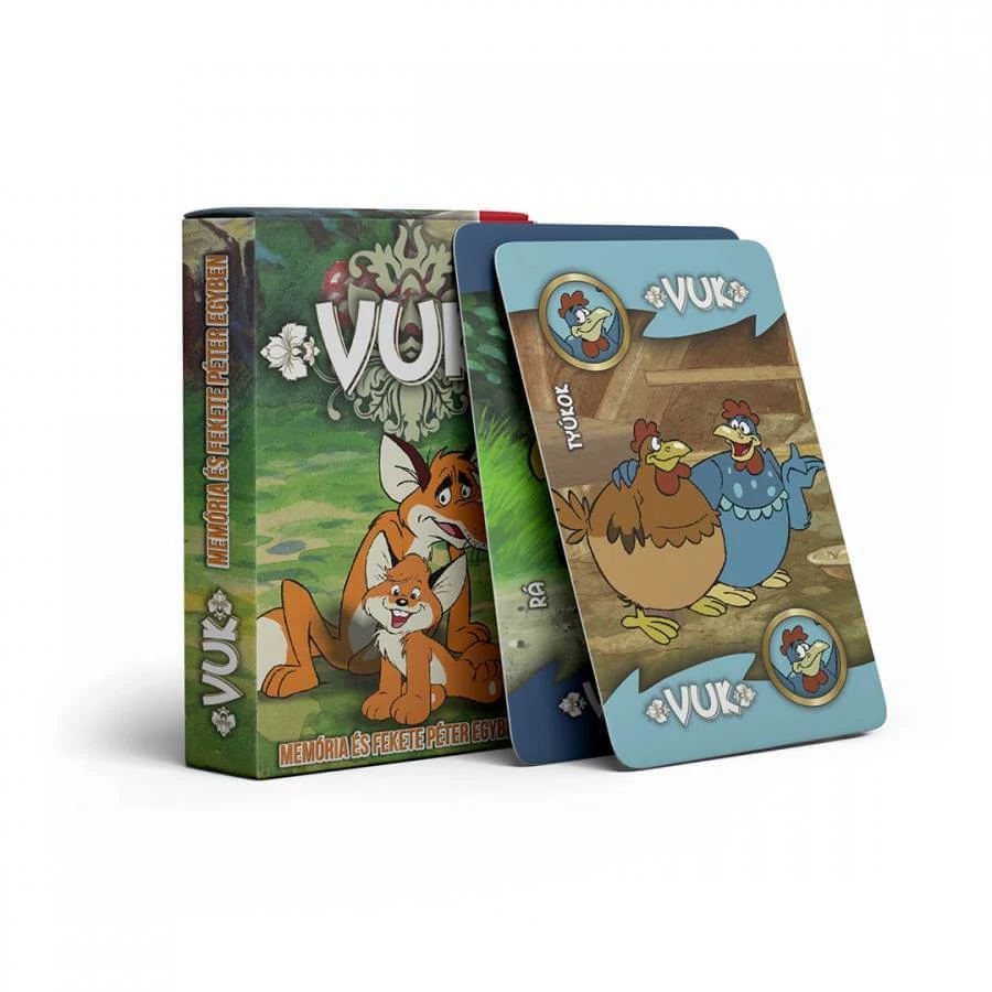 Klasszikus gyerek kártyajáték a népszerű Vuk rajzfilm világából! A játék a jól ismert Fekete Péter szabályait követi: a játékosok párokat gyűjtenek, és az nyer, akinek a legtöbb párja van. De vigyázat, akinél a végén a Fekete Péter marad, az veszít!