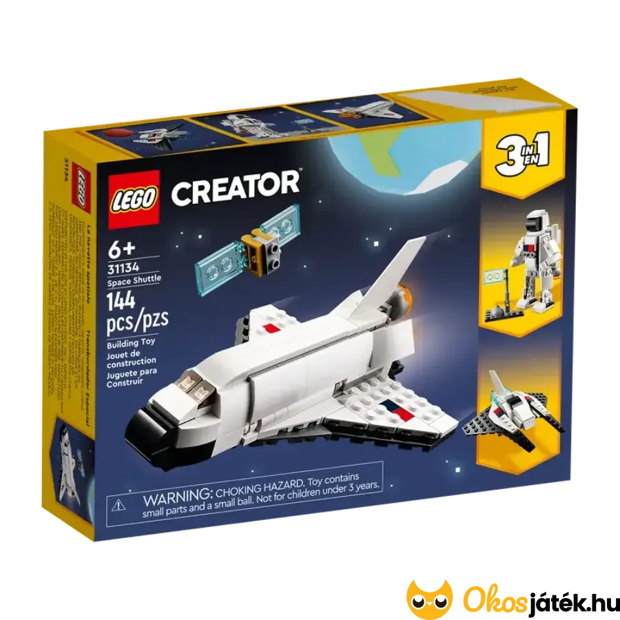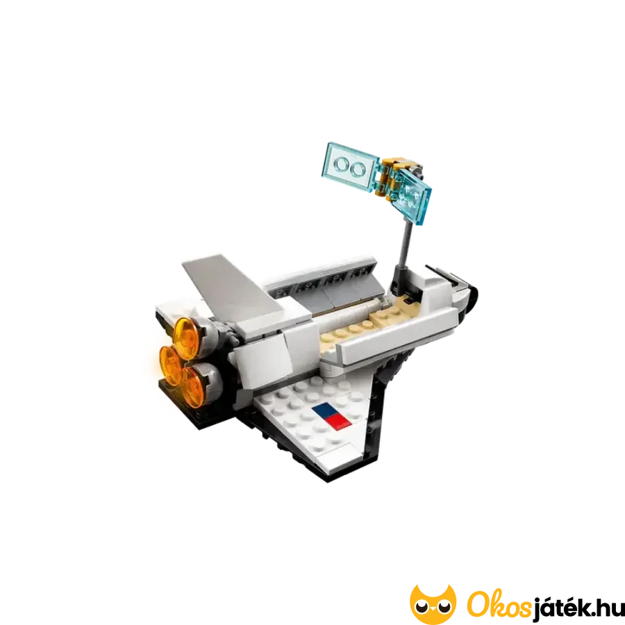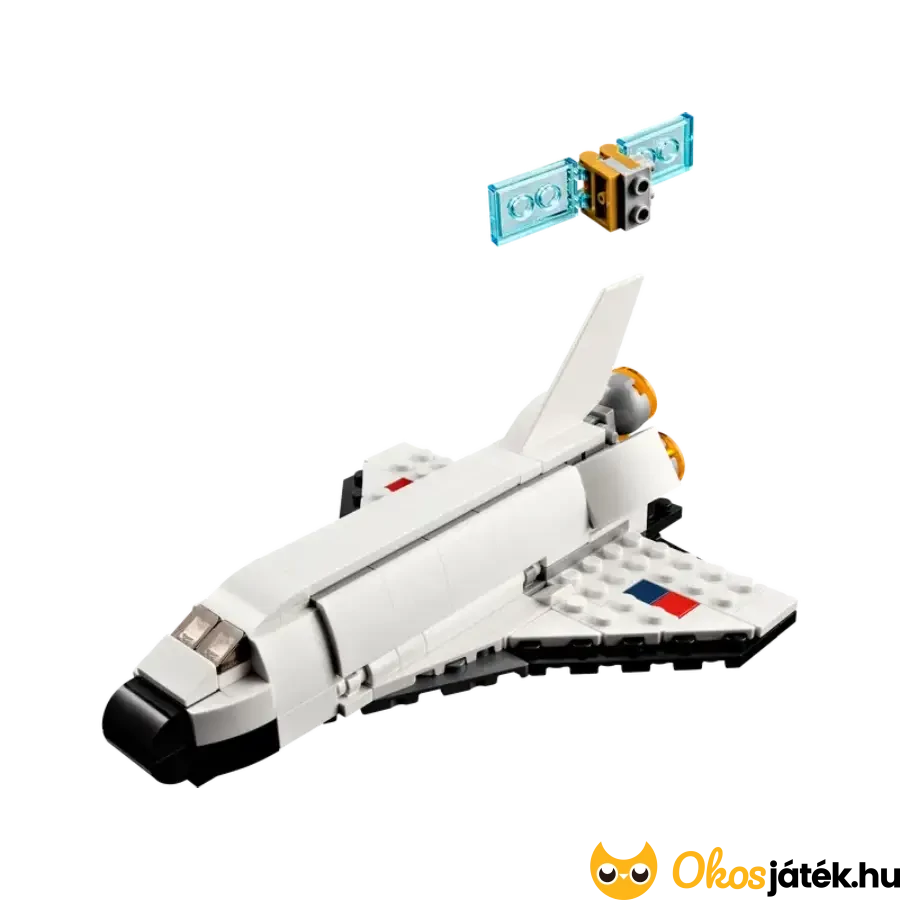 A 144 elemből álló szettben a gyerekek felépíthetik a klasszikus űrsiklót, amelynek raktere kinyitható, így belőle egy műholdat is kiemelhetnek.