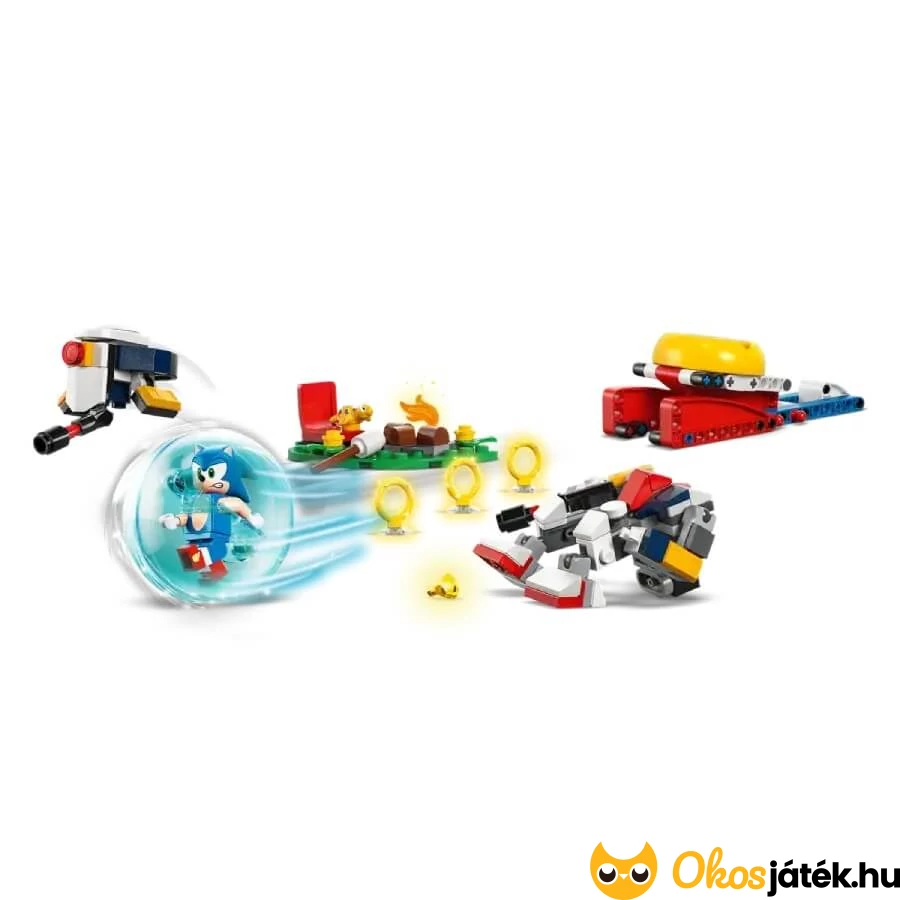 A Lego 77001 Sonic szett tartalmaz egy tábortűzhelyszínt megjelenítő építményt, egy gyorsulógömböt és kilövőt, valamint olyan kiegészítőket, mint a káosz smaragd és a 3 aranygyűrű. A videójátékon alapuló szett 4 Sonic szereplő figuráját is tartalmazza: Sonic minifigura, „repülő” G.U.N. Beetle robot drón, beállítható G.U.N. Hunter robotfigura és Trocky.