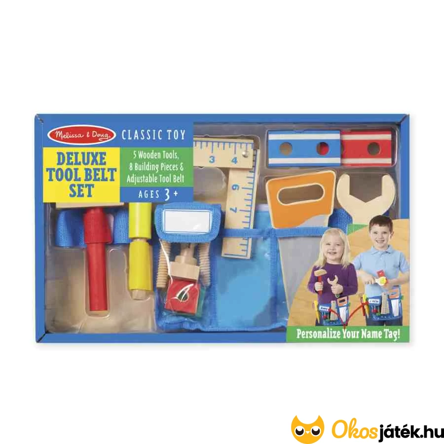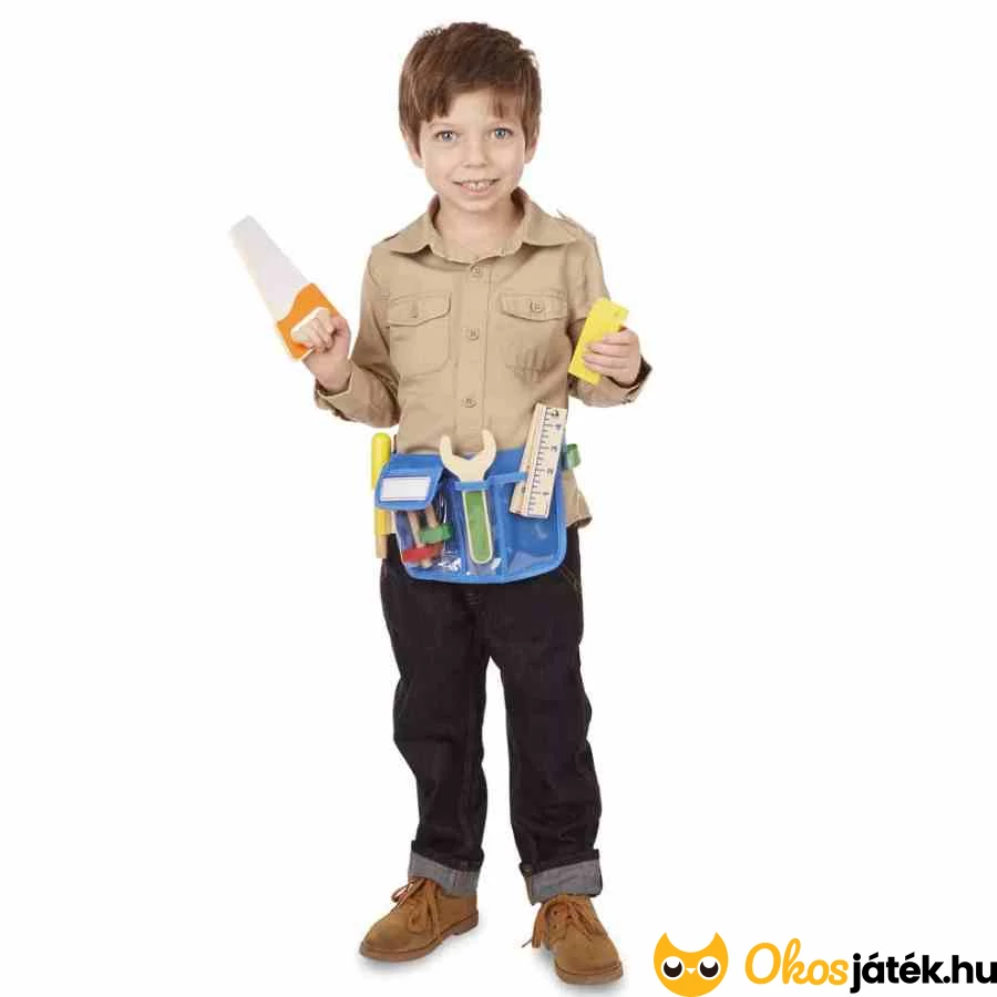 Minőségi fából készült gyerekszerszámok szerszámtartó övvel. A különböző eszközök használatával a csemeték igazi barkácsmesterekké válhatnak.