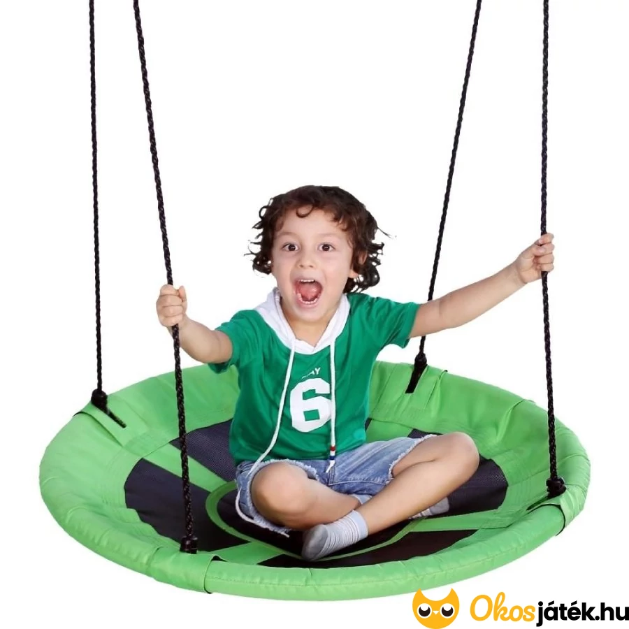 Stílusos, kellemes zöld színű fészekhinta, mely kényelmes és biztonságos kialakítással készült. Kültéri használatra ajánlott hinta gyerekeknek, melyben maximum két gyermek hintázhat egyszerre.