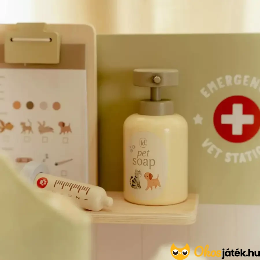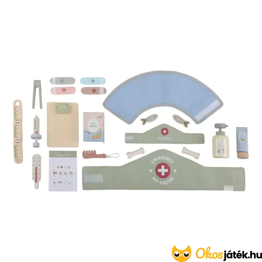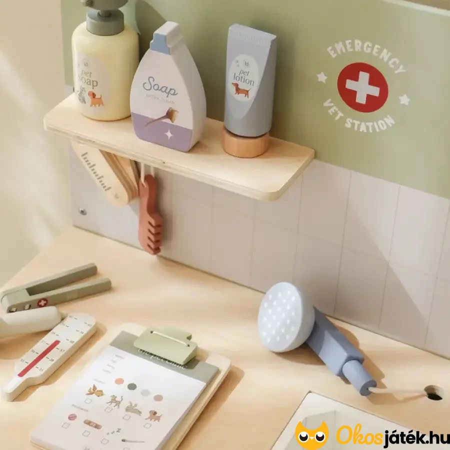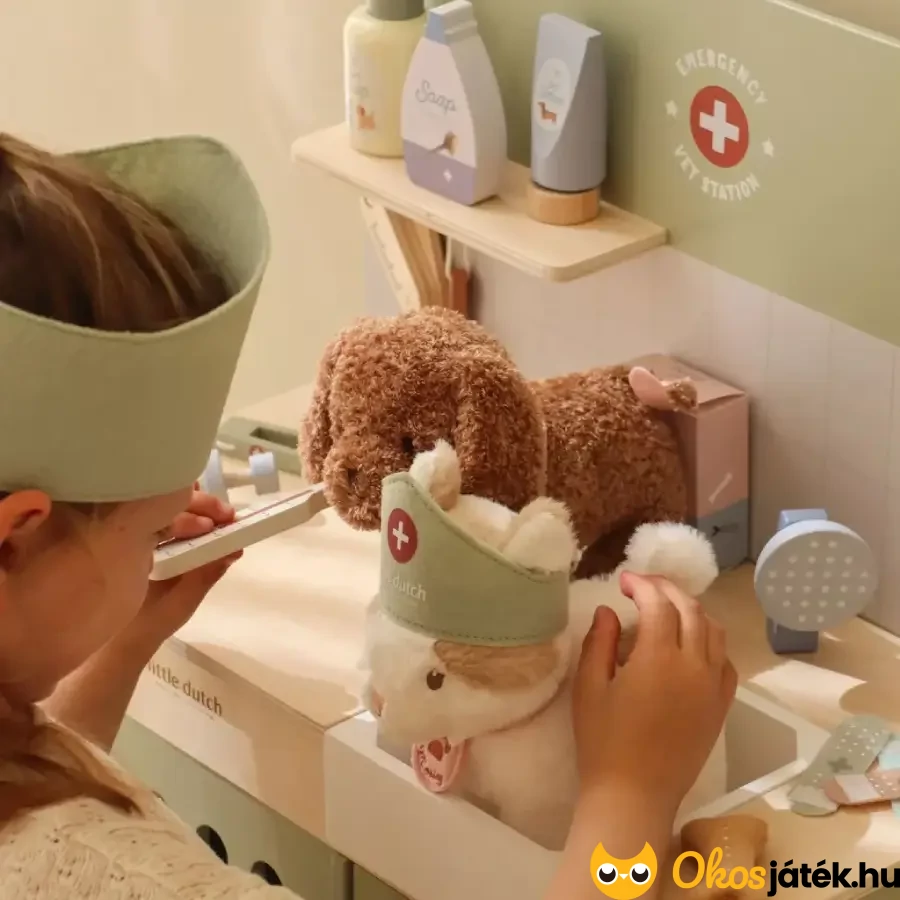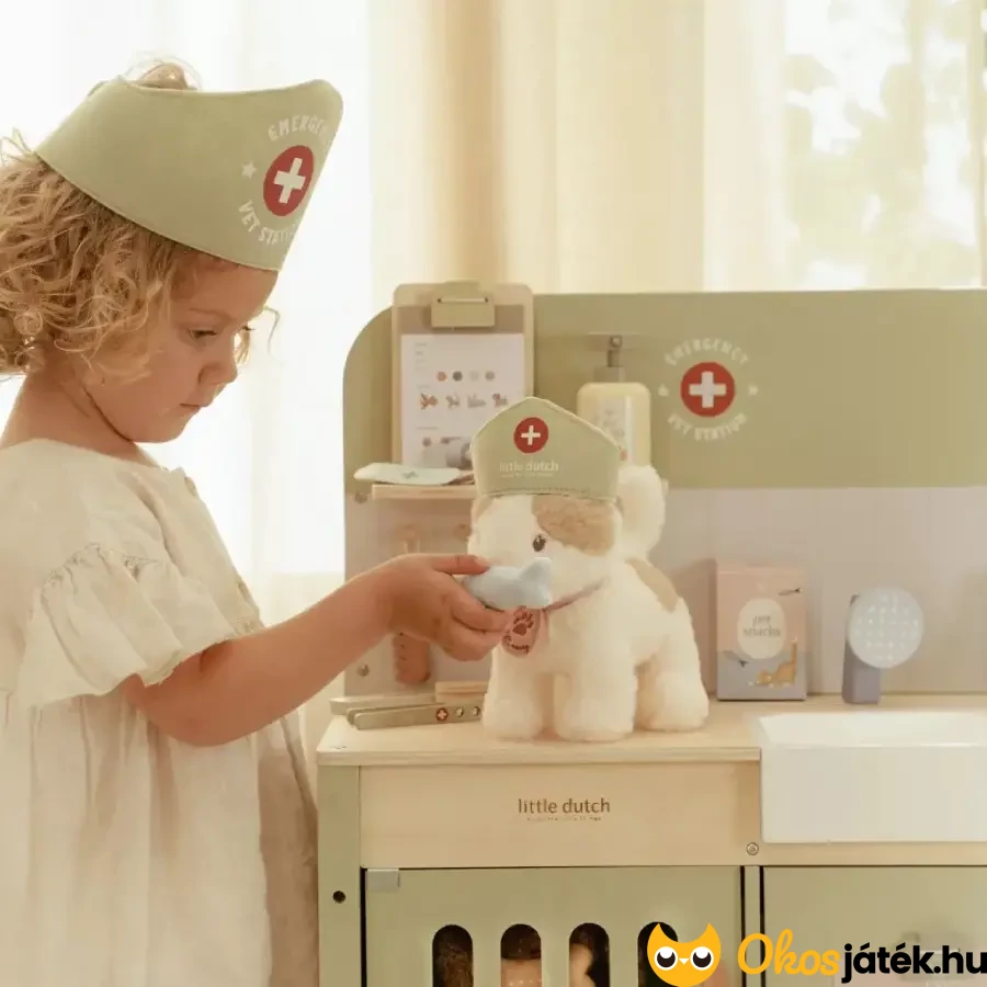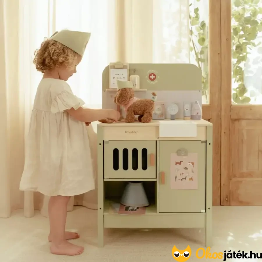 Kedves, pasztellszínű, fából készült szerepjáték készlet a holland Little Dutch játékgyártótól, mely lehetőséget ad a gyerekeknek, hogy kipróbálhassák magukat állatorvosként.