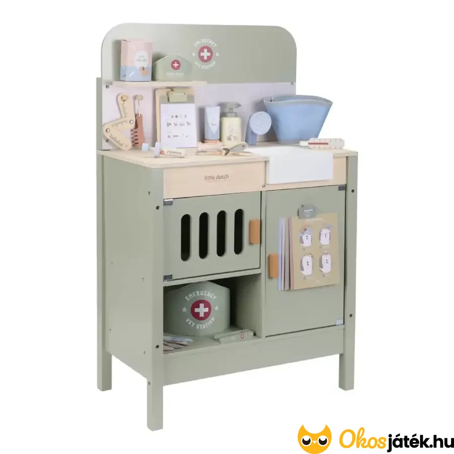 Kedves, pasztellszínű, fából készült játékkészlet a Little Dutchtól, melyben a gyerekek állatorvososdit játszhatnak. A szerepjáték fejleszti az empátiát és a képzelőerőt, miközben a kicsik gondoskodhatnak a plüssállataikról.