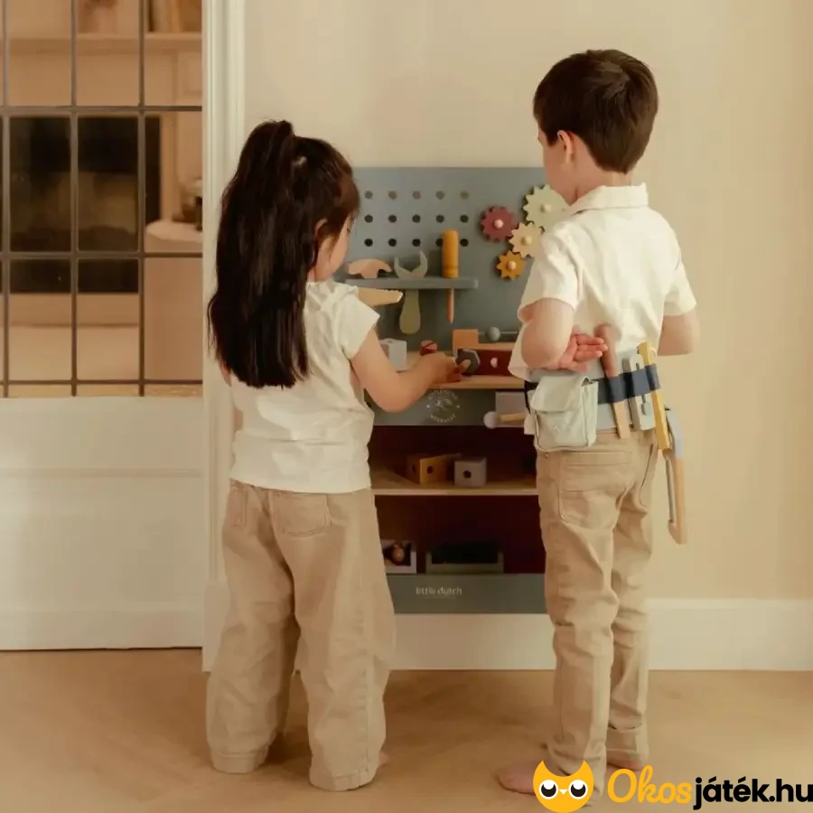 Gyönyörűen kidolgozott stabil és biztonságos fa barkácspad a Little Dutchtól, mely ideális választás a kis barkácsolók számára. A gondosan megtervezett játékmunkapad segítségével a gyerekek elmerülhetnek a szerepjáték világában, miközben játékosan ismerkednek meg a különböző szerszámokkal és a barkácsolás alapjaival.