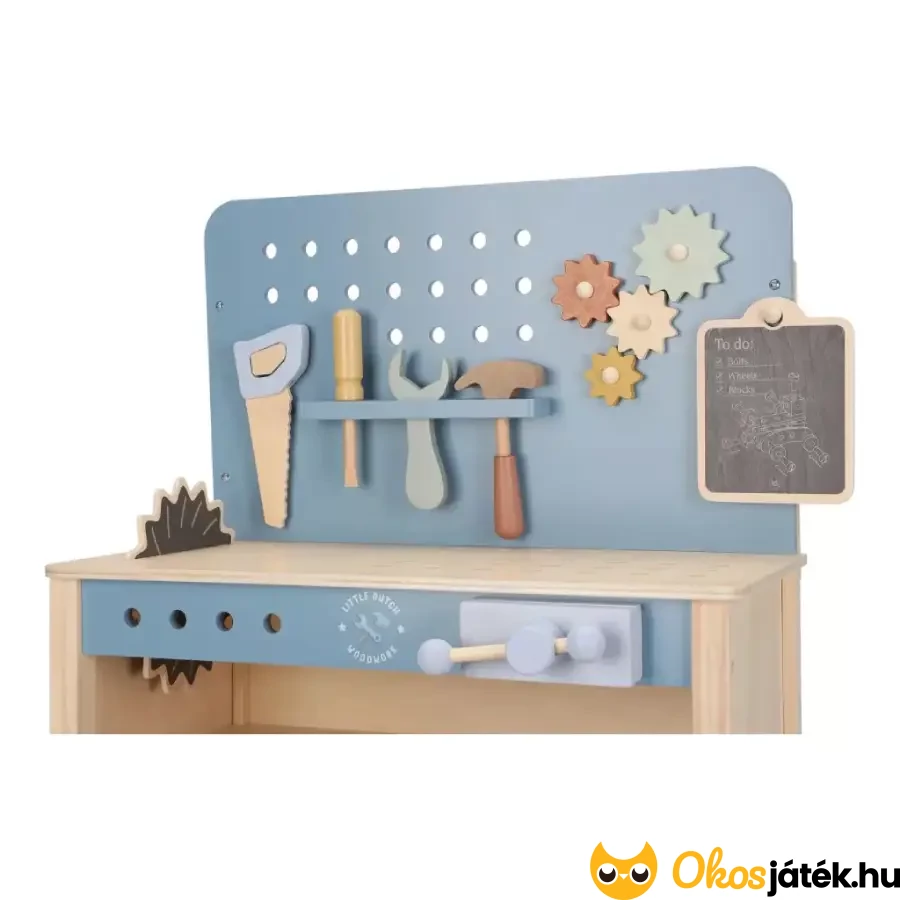 Mutatós, kellemes pasztellszínű barkácspad a híres holland márkától, a Little Dutchtól. A játék tökéletes ajándék kisfiúk számára – strapabíró, esztétikus és fejlesztő játék, amely hosszú időn át garantálja a vidám, tanulással teli pillanatokat. Kedves ajándék lehet nagyobb alkalmakra, karácsonyra, vagy születésnapra is.