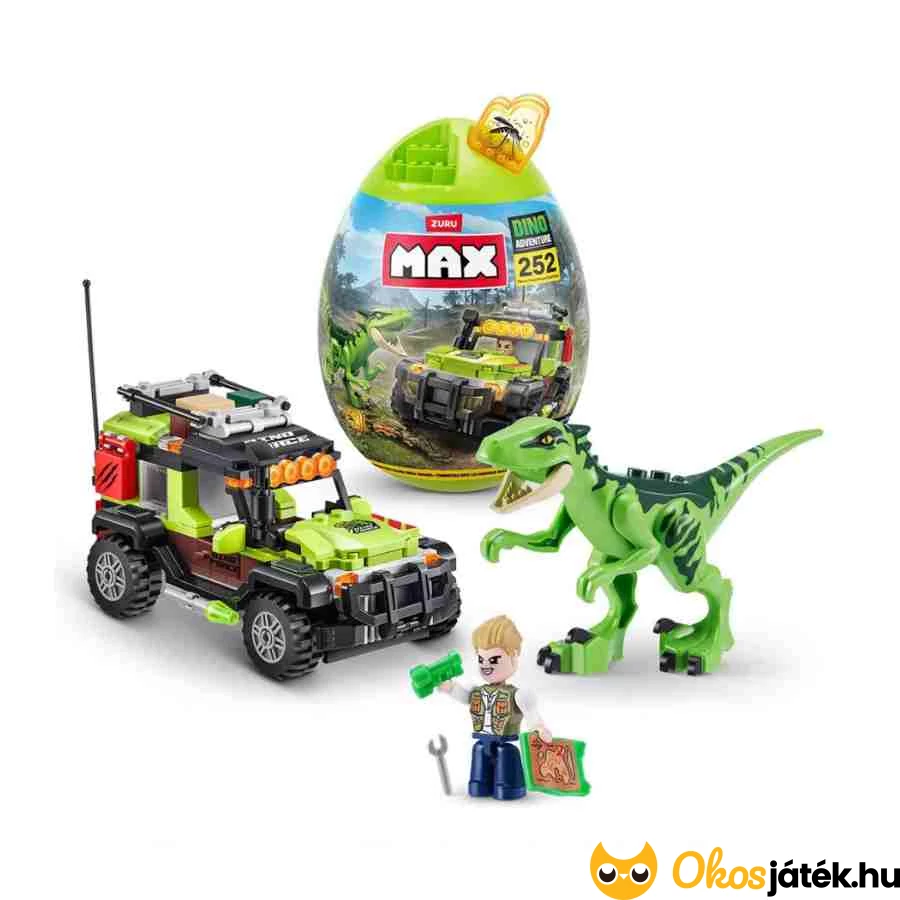 A Zuru MAX Dino Adventure építőjáték egy hatalmas, tojás alakú kapszulában érkezik, amely egy izgalmakkal teli, őskori világot rejt.
