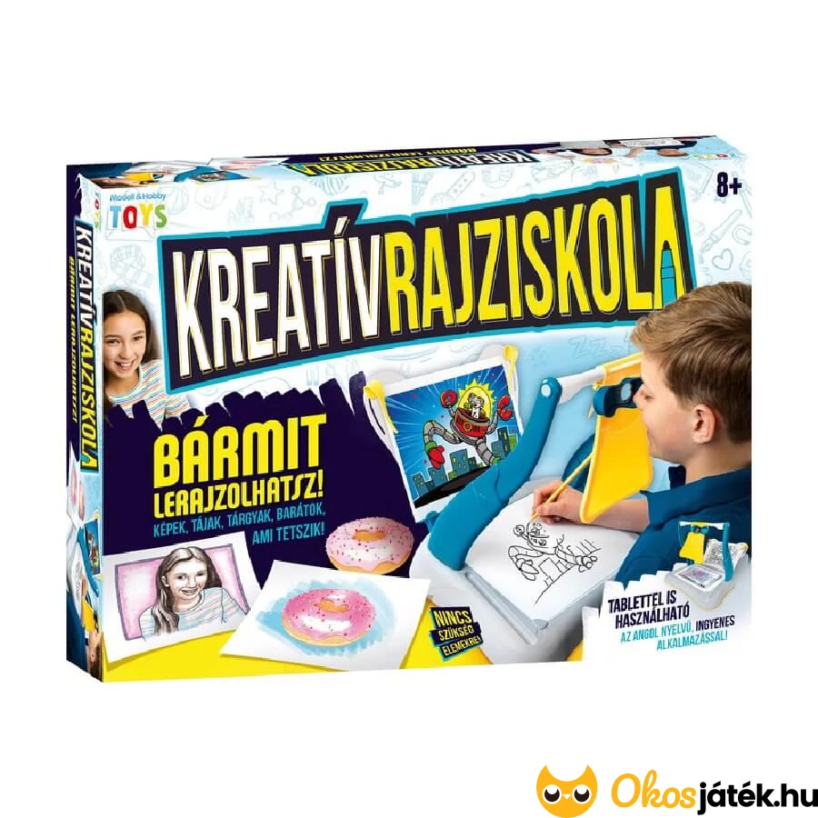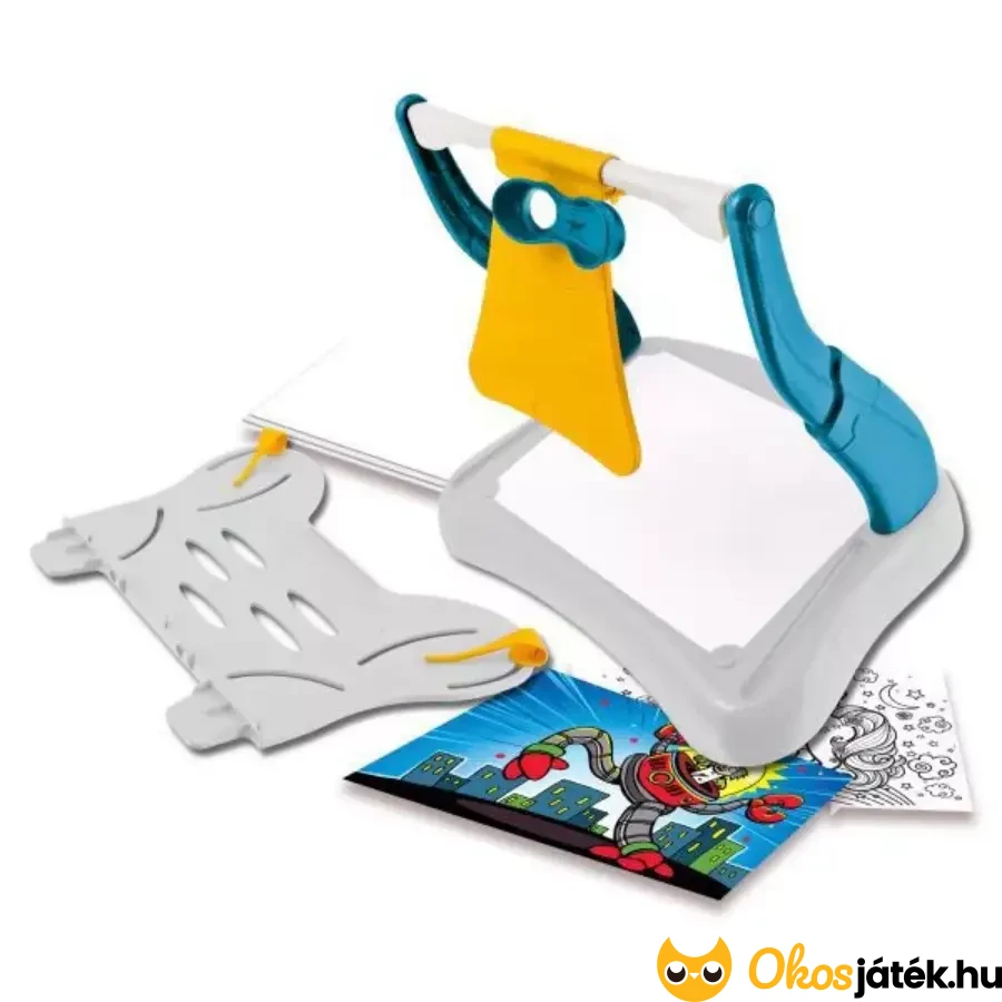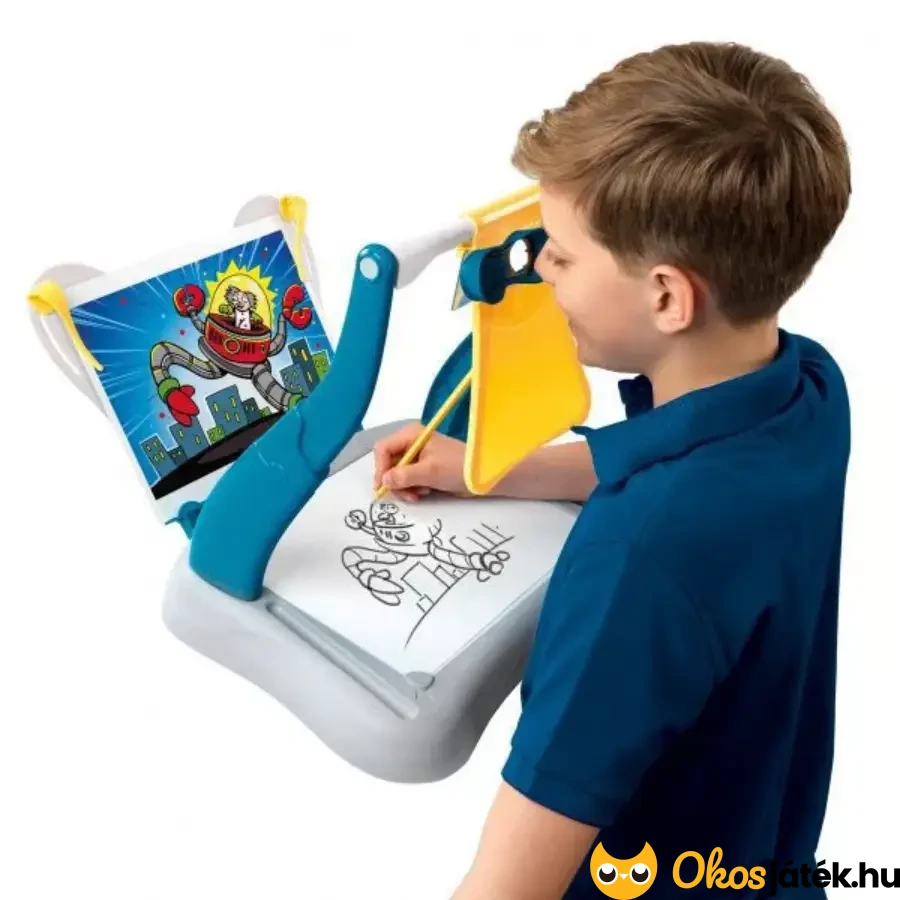 Különleges képrajzoló készlet nagyobbaknak, 8 éves kortól, melyben a szerkezet tükrök segítségével hozza létra a papíron a kiválasztott kép árnyképét, így a gyerekeknek csak a kukucskálóba kell nézniük és kezdődhet is az alkotás.