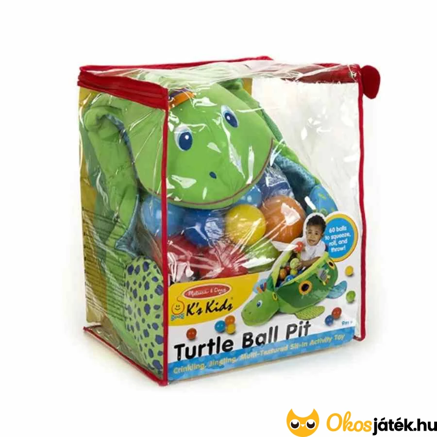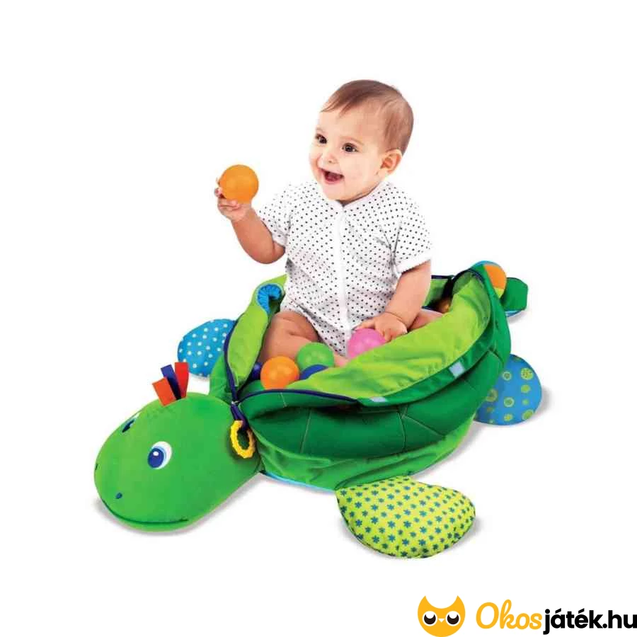 Kifejezetten a legkisebbek számára készült labdamedence, amiben a kedves teknős teste tele van izgalmas érzékszervi elemekkel: lábai különböző anyagúak, páncélján tükör, csörgő és selymes szalagok találhatók – mindez a tapintás és a látás fejlesztését segíti.