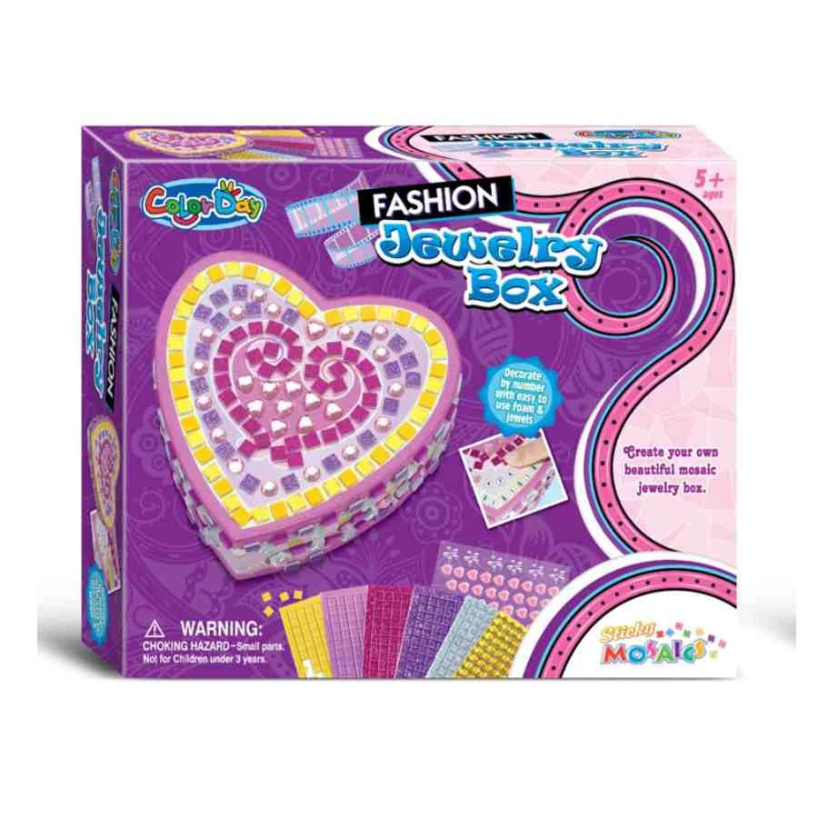 Mozaik ragasztós kreatív játék lányoknak, melyben a gyönyörű dobozkát fényes strasszkövekkel, öntapadós mozaikdarabokkal díszíthetik a gyerekek.