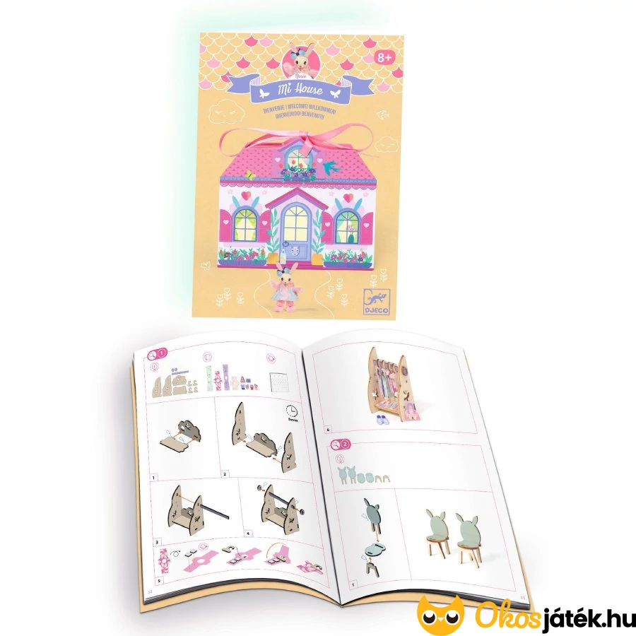 A makettezéshez nagyon hasonlít a folyamat. A lázervágott fa alkatrészekből kis szekrény, ágyikó, asztalka, nyusziruha lesz. A szétnyitható házikót szalaggal lehet lezárni.