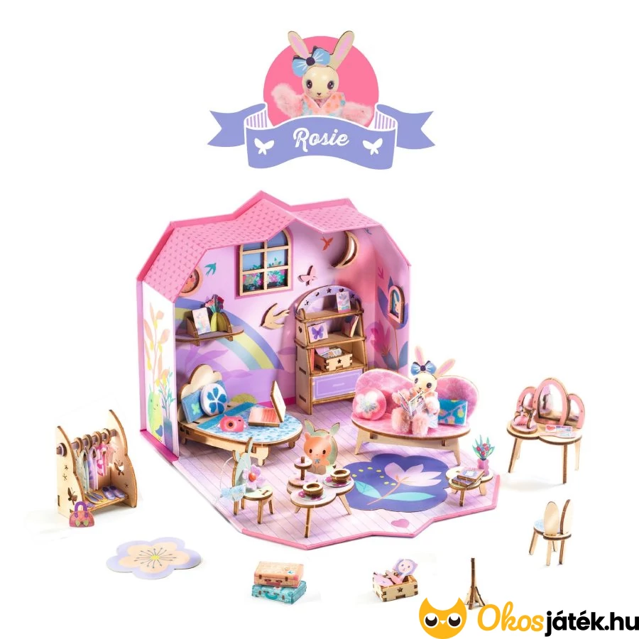 A színpompás szobabelső a kis nyuszi figurával és a funkcionális berendezési tárgyakkal tökéletesen alkalmasak szerepjátékozáshoz.