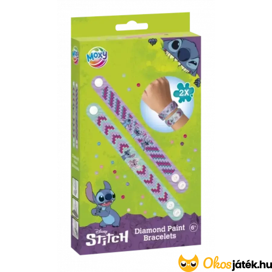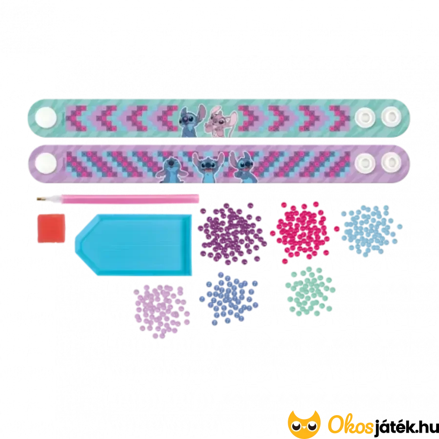 Fedezd fel a gyémántfestés szórakoztató világát ezzel a kreatív készlettel. Ötletes, kreatív ékszerkészítő készlet, melyből két darab gyönyörűen csillogó gyémántszemes, Stitch mintás karkötőt készíthetnek el a lányok.