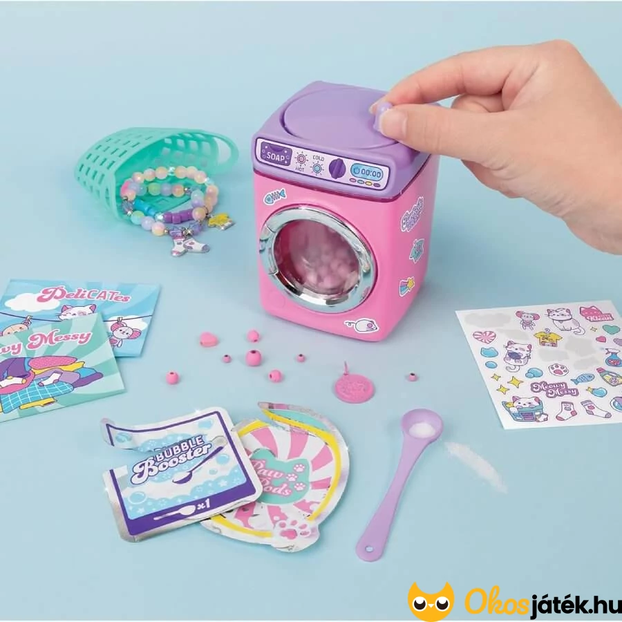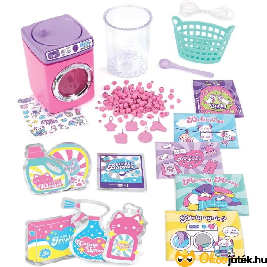 A gyerekek játék során nemcsak gyöngyöt fűzhetnek, hanem előtte egy látványos mosási folyamatnak is részesei lehetnek.