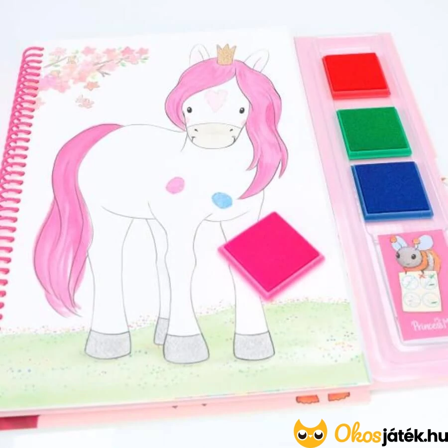 A hercegnős ujjfestő könyvben a gyerekek kedves képekkel találkozhatnak, amiket ujjfestéssel díszíthetnek. A könyv lapjai vastag papírból készültek, így nem áznak át az oldalak amikor a gyermek "kifesti" az képeket az ujjacskáival.