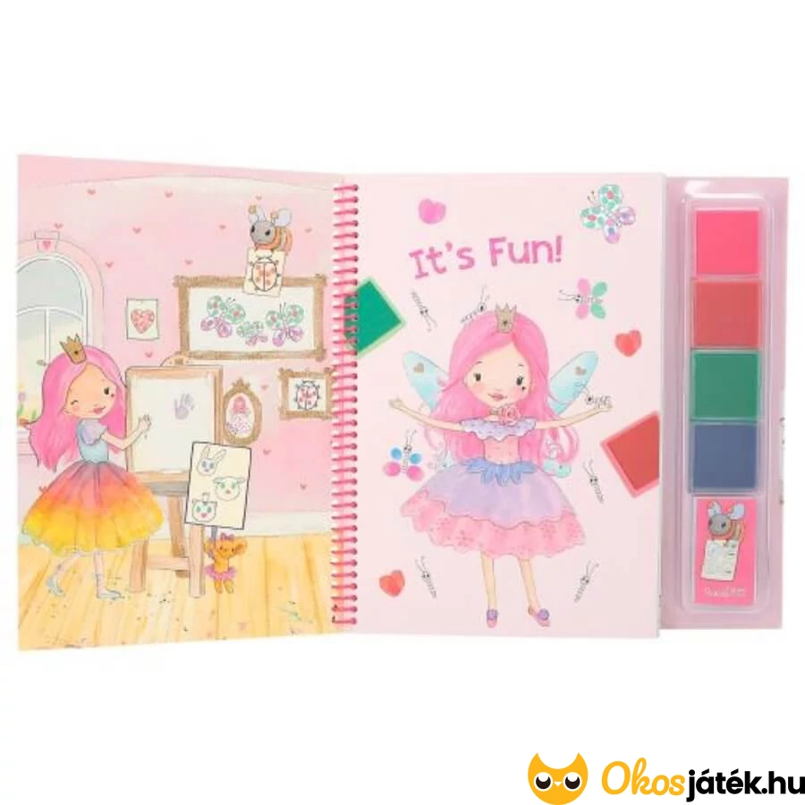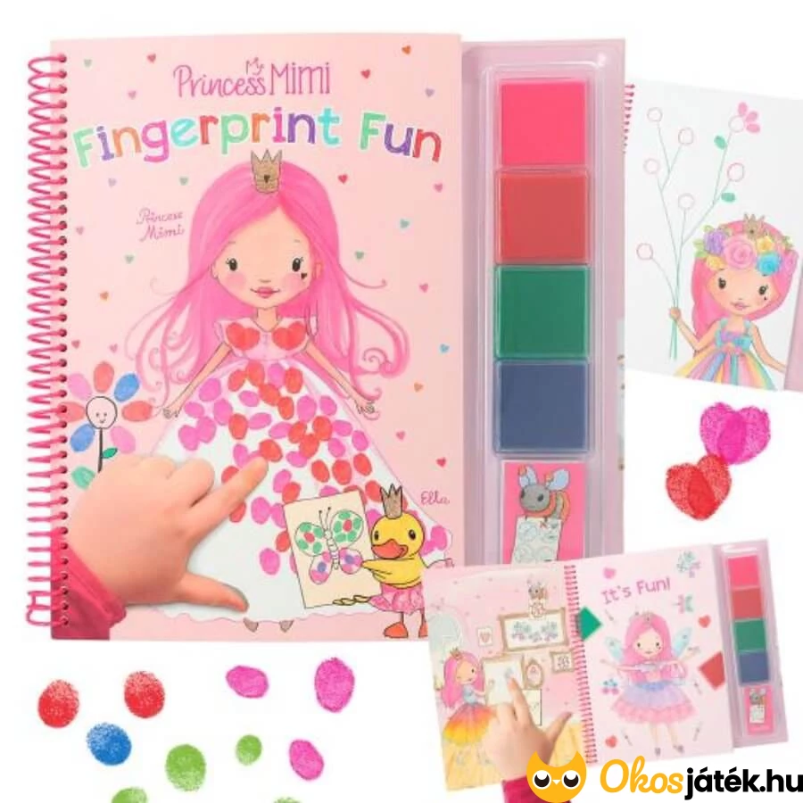 A Princess Mimi ujjfestőben lemosható festékek vannak, melyeknek mennyisége több, mint ami a képek díszítéséhez szükséges. A képek a jobb oldalon kaptak helyet, és a bal oldal teljesen üres, így oda a gyermek saját képzeletét használva alkothat képeket.