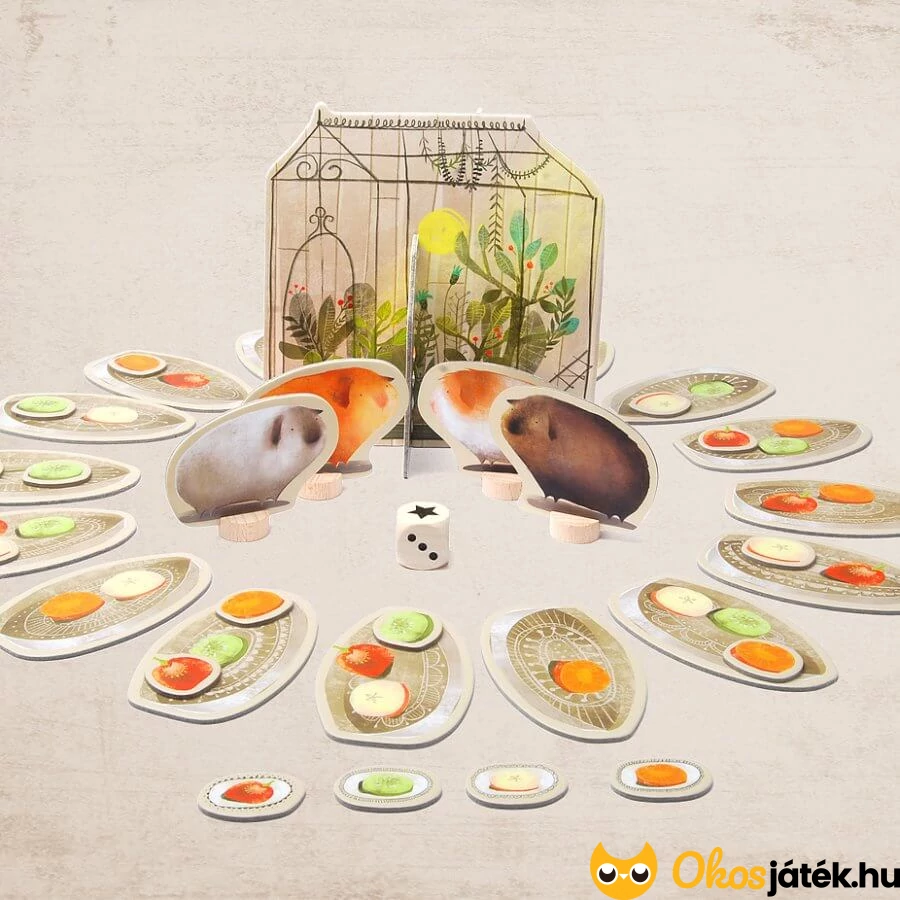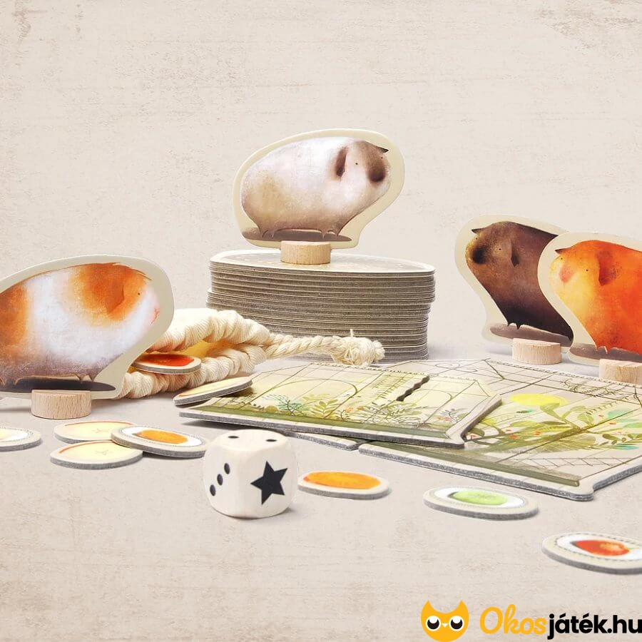 Minden játékos válasszon egy tengerimalacot és egy kedvenc csemegét (4 korong).