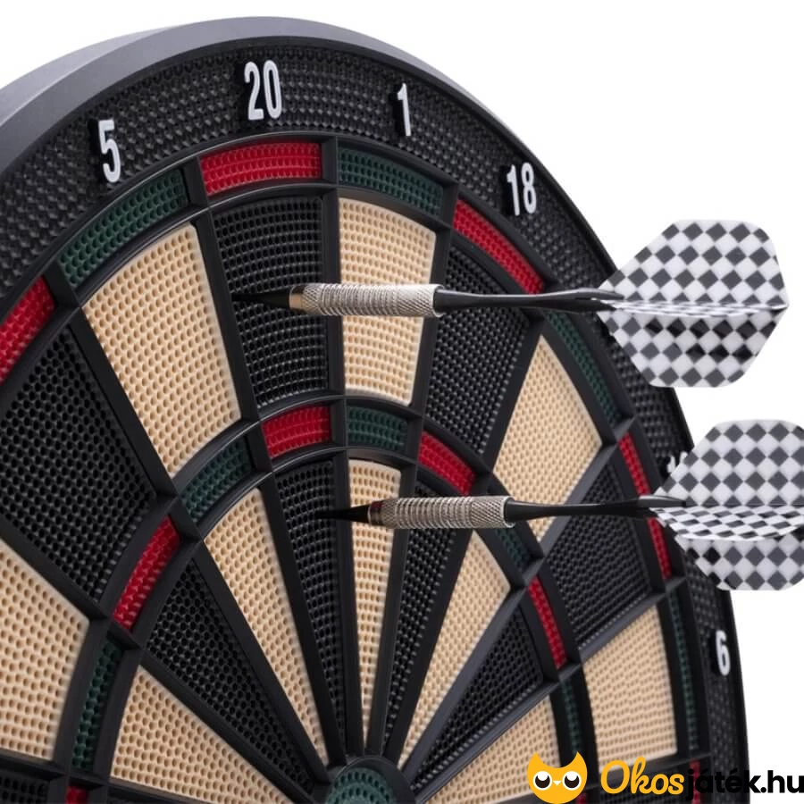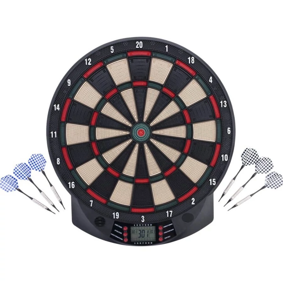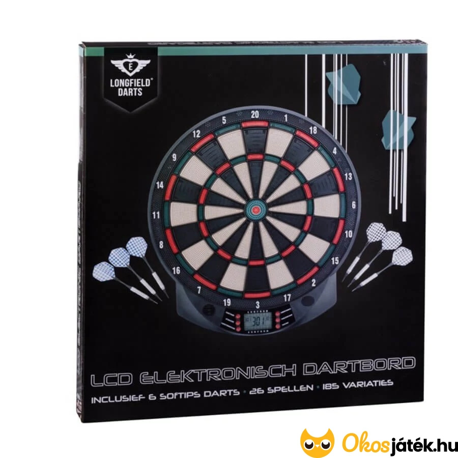 Digitális, LCD kijelzős darts tábla, mellyel 26 játékot lehet játszani 185-féle változatban. A készlethez 6 darab dobónyíl tartozik, amiknek hegye műanyag.