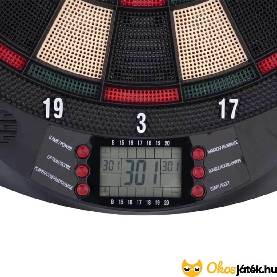 Az elektromos darts tábla célpont felülete 38 cm-es.