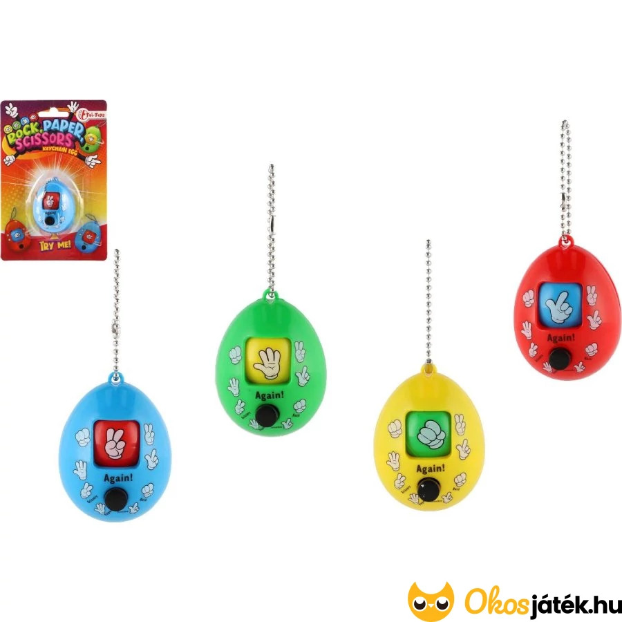 Klasszikus kő-papír-olló játék most mini, hordozható változatban. A kulcstartós, kisméretű játék egy gombnyomásra véletlenszerűen választ helyettünk a kő, papír, vagy olló közül, így a vitás kérdések könnyen eldönthetők.