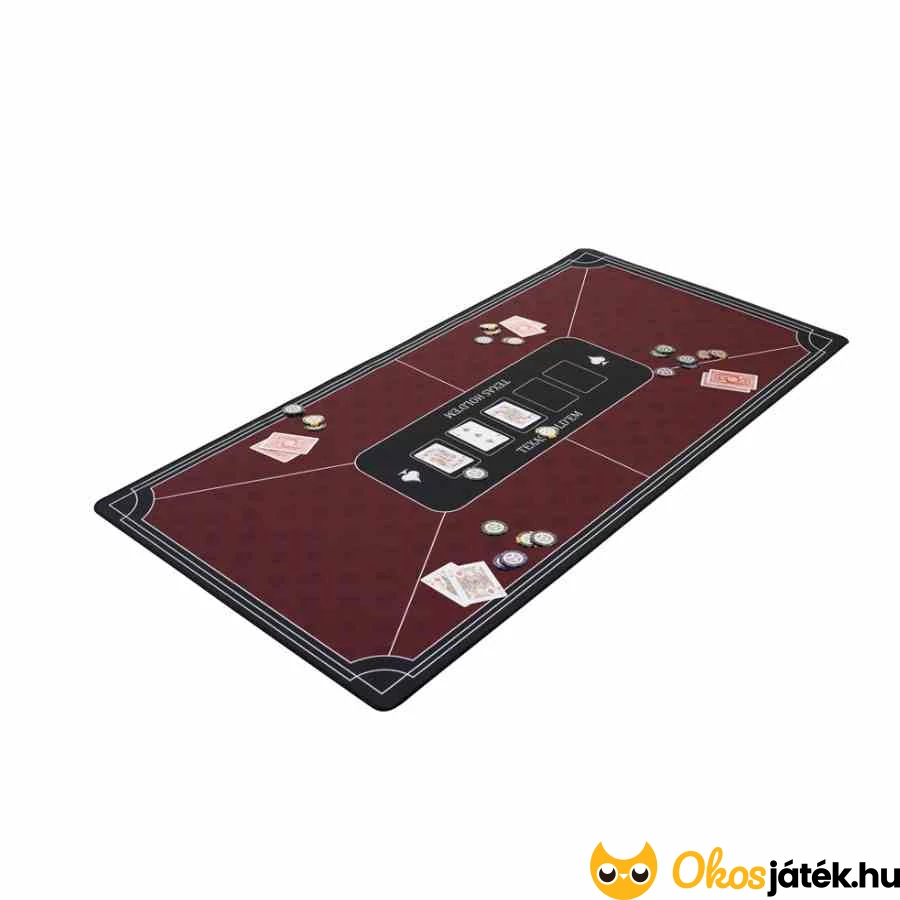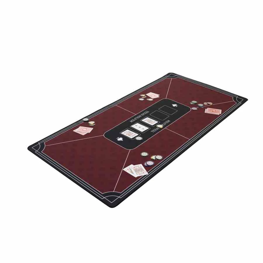 Bordó, profi póker szőnyeg sima és stabil játékfelülettel Texas Hold'em-hez, 6 játékos részére. Csúszásmentes, könnyen feltekerhető és hordozható, amely bármely asztalt pókerasztallá alakít.