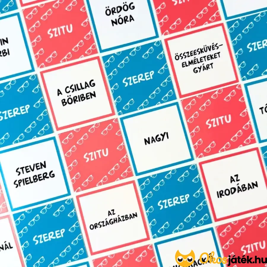 A játékosok kapnak egy-egy színes szemüveget, melyre ráillesztik a két kártyájukat, amiket nem nézhetnek meg! A játékosok így látni fogják a többiek kártyáit, de a sajátjukat nem. A fordulót az nyeri, akinek sikerül először kitalálnia a szereplőjét és a helyzetét.
