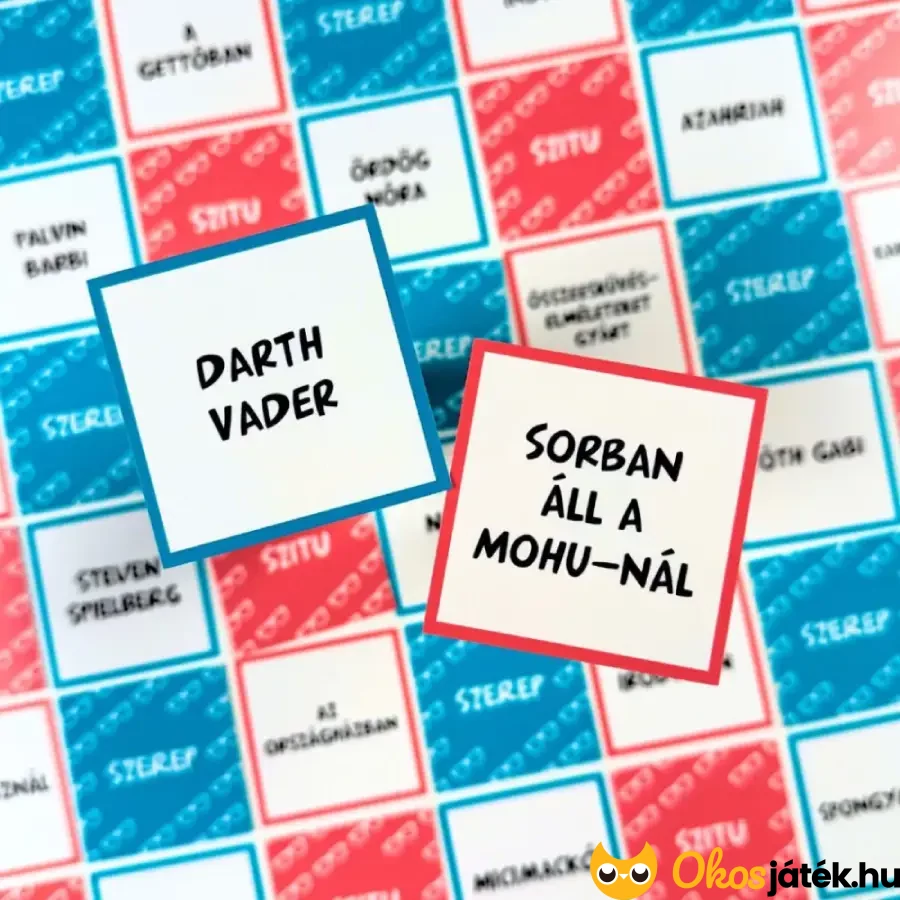 Könnyed, barkóbára építő kitalálós partijáték humoros kártyákkal nagyobbaknak, felnőtteknek. A játékban mindenki két kártyát visel majd a fején, amit nem lát, de a többiek igen. Innentől kezdve igen-nem kérdésekkel kell rájönni kik is vagyunk és milyen helyzetbe kerültünk.