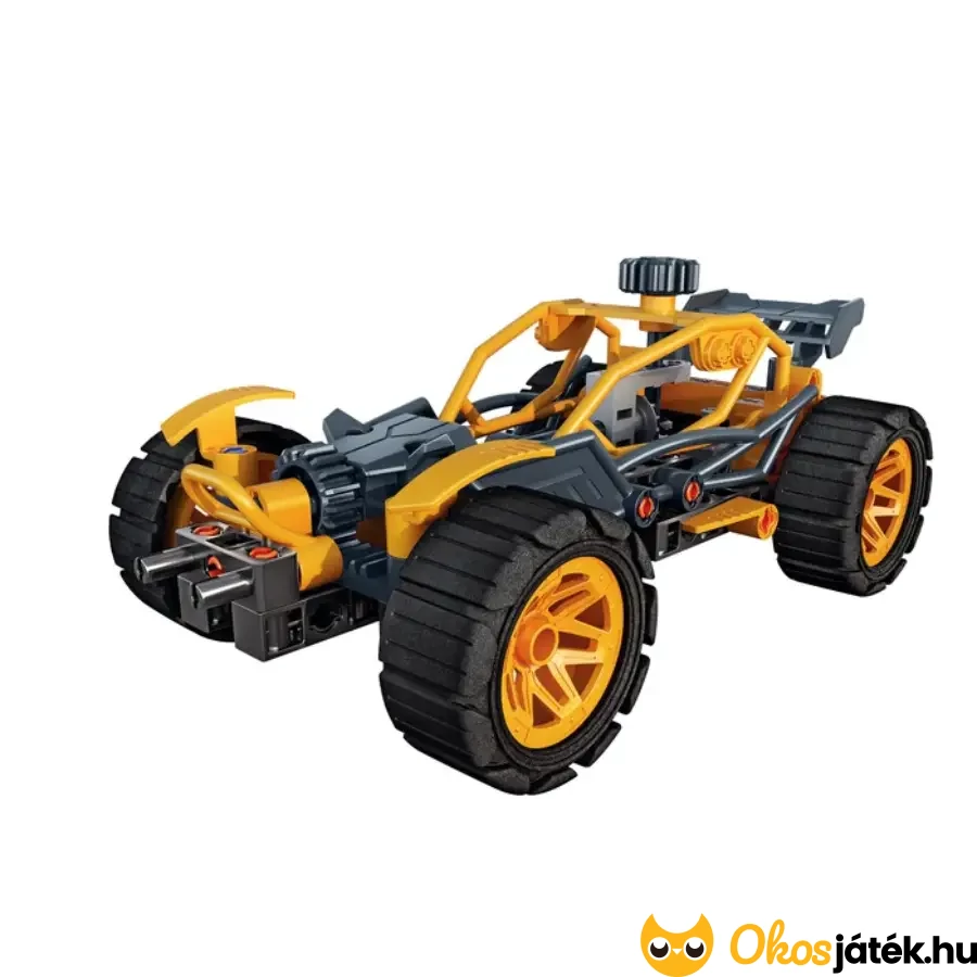 A készlettel 2 modell építhető meg - egy buggy és egy quad, az egyik a képes útmutatós segítségével, míg a másik az ingyenes letölthető applikációval. A modelleket több mint 100 darabból lehet összeállítani, ráadásul nagy hangsúlyt fektetnek a mechanikai elemekre - dugattyú, hátsó kerék meghajtás, ékszíj. Ezek működését élőben tapasztalhatja meg a gyermek.