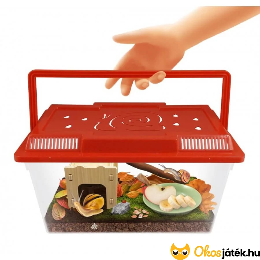 Tágas csigabarát élőhely megtervezésére és az állatok megfigyelésére ad lehetőséget a műanyagból készült, tetővel ellátott terrárium.