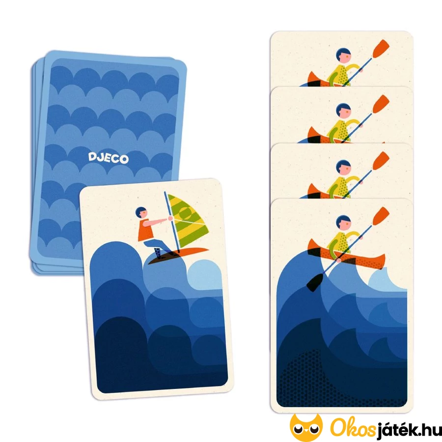 - 54 db kártya (5 féle vízisport, sportonként 10-10 kártya, +4 zászló kártya)