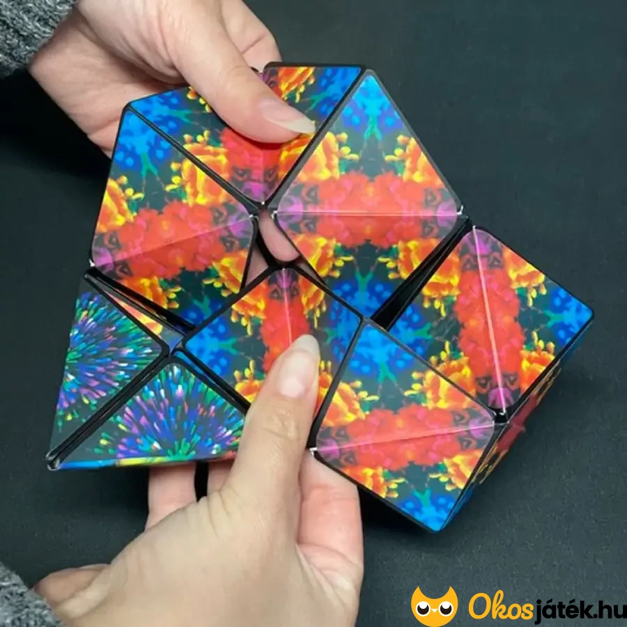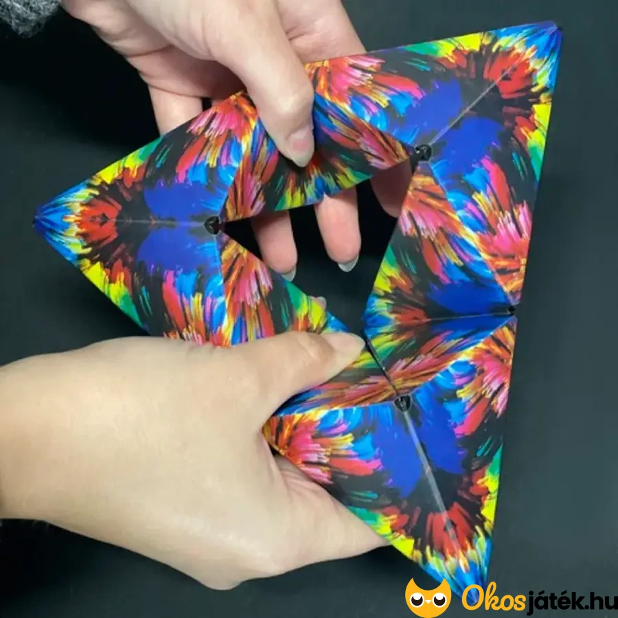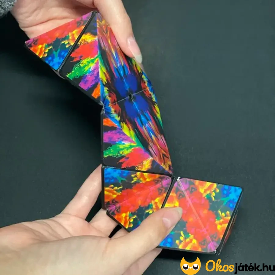 Gyönyörű, színkavalkádos hajtogathatós kockajáték 6 éves kortól, mellyel akár 72 különböző formát lehet létrehozni. Az elemekben mágnesek vannak, melyek segítenek az alakzatok kialakításában.