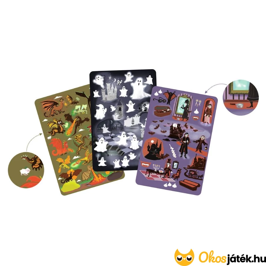 A Djeco kakukktojás kereső kártyajáték lapjain a vizuális megfigyelésé a főszerep, hiszen például sok különböző szellem között kell észrevennünk a pillangót.