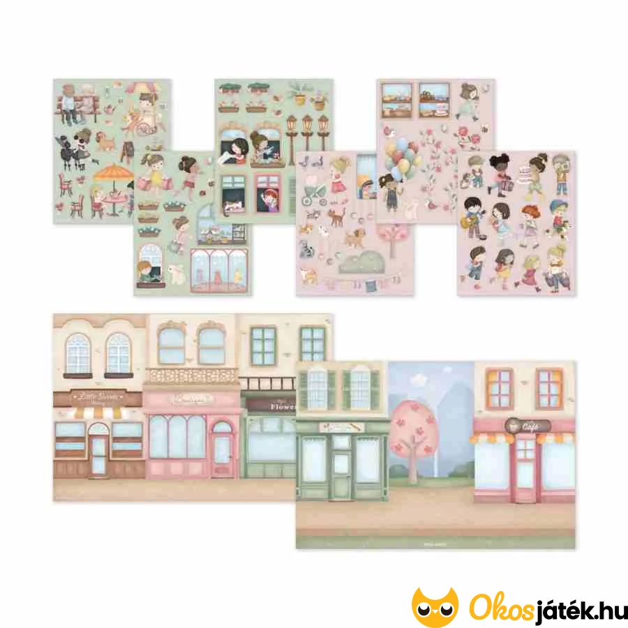Rosa és barátainak hétköznapjaiba kukkanthat be gyermeked ezzel a matricás füzettel. A gyerekek kedvükre díszíthetik Rosaék mindennapjait a kedvenc cukrászdájuk előtt, vagy éppen a fodrászhoz tartva. A készlet két aranyos utca hátteret tartalmaz boltokkal, amelyet aranyos, lányos matricákkal népesíthetünk be.