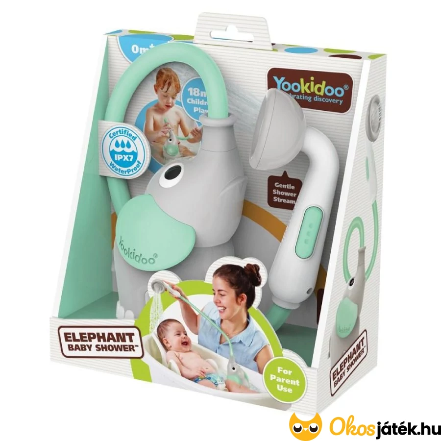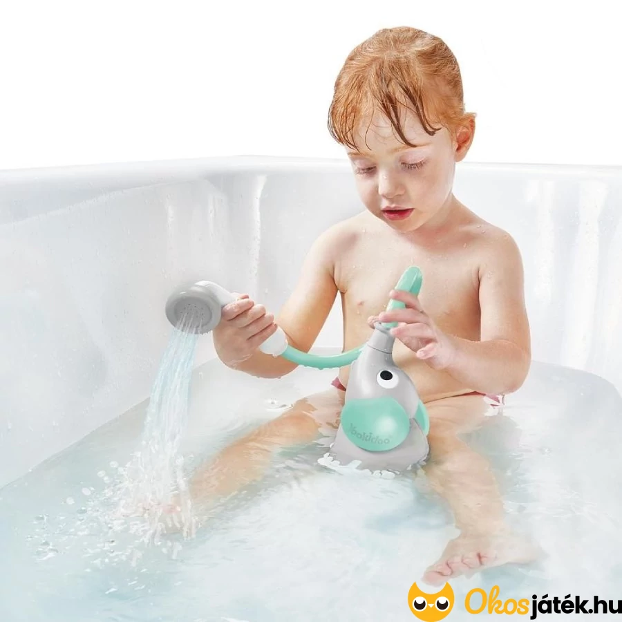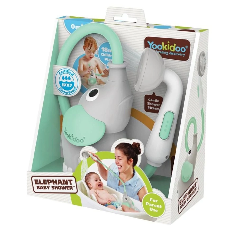 A szülőnek nincs más teendője, mint a fürdővízbe tenni a kis elefántot, megnyomni a zuhanyfej oldalain található gombokat és már indulhat is lágy a vízsugár a kedves kiselefánt hosszú ormányából.